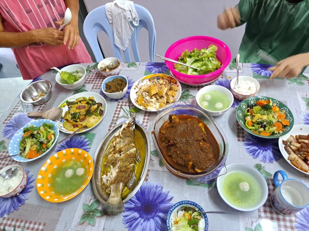 老爸对他的虾不满意, 后来后知后觉是因为忘了放椰浆santan, 不是食谱的问题。