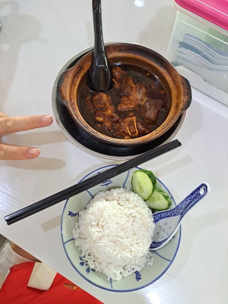 这一碗猪脚醋, 有无饭都一样价钱, 啊不管了okay 来点饭, 拍照的时候老哥的手✌️。 好像也是在暗示着我自己, 我也成功征服我自己, 听我心之所向。Be true to myself, yeah!