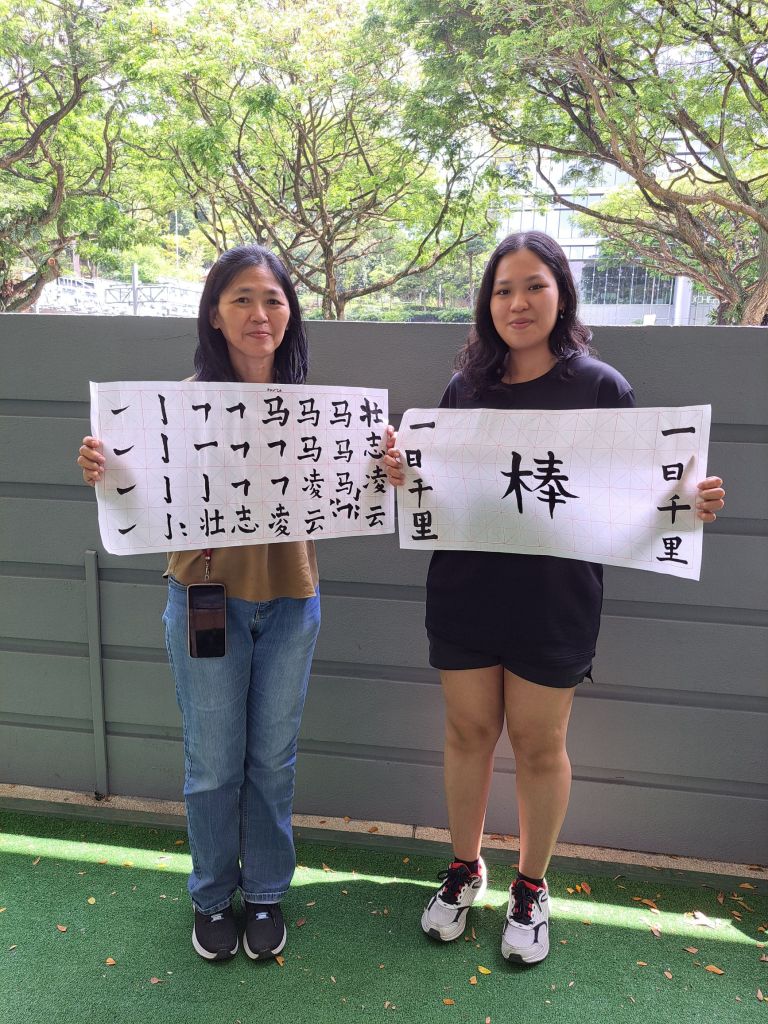 我也在这3位陌生人面前展现自信,培养她们的自信。领略中文书法的美。