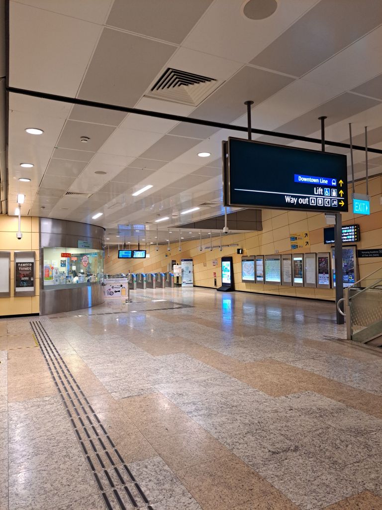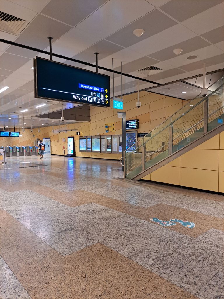 第一次搭Downtown Line 蓝线回去。在其中看着很多人都没有下车,头脑又开始胡思乱想,假想理论, 想必是离开家很远的地方上班吧。’you see a lot of people didnt get down, maybe they work somewhere far from home’。 在”Tampines alot of people will get down”- Mehmuel 说, 我推测’ maybe they reached home or maybe they want to transfer to Pasir(Pensir) Ris just like we do.’