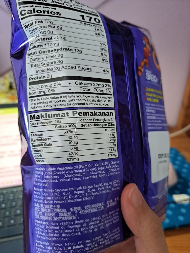 后知后觉 原来比Mehmuel 的 penpen ahgong 更早喜欢jagung 的人是我 😳, Super Ring 居然有22% jagung 🌽成分。 第一次细读到底Super Ring 是什么做的, 都不知道是什么, 只知道它是我的童年零食。