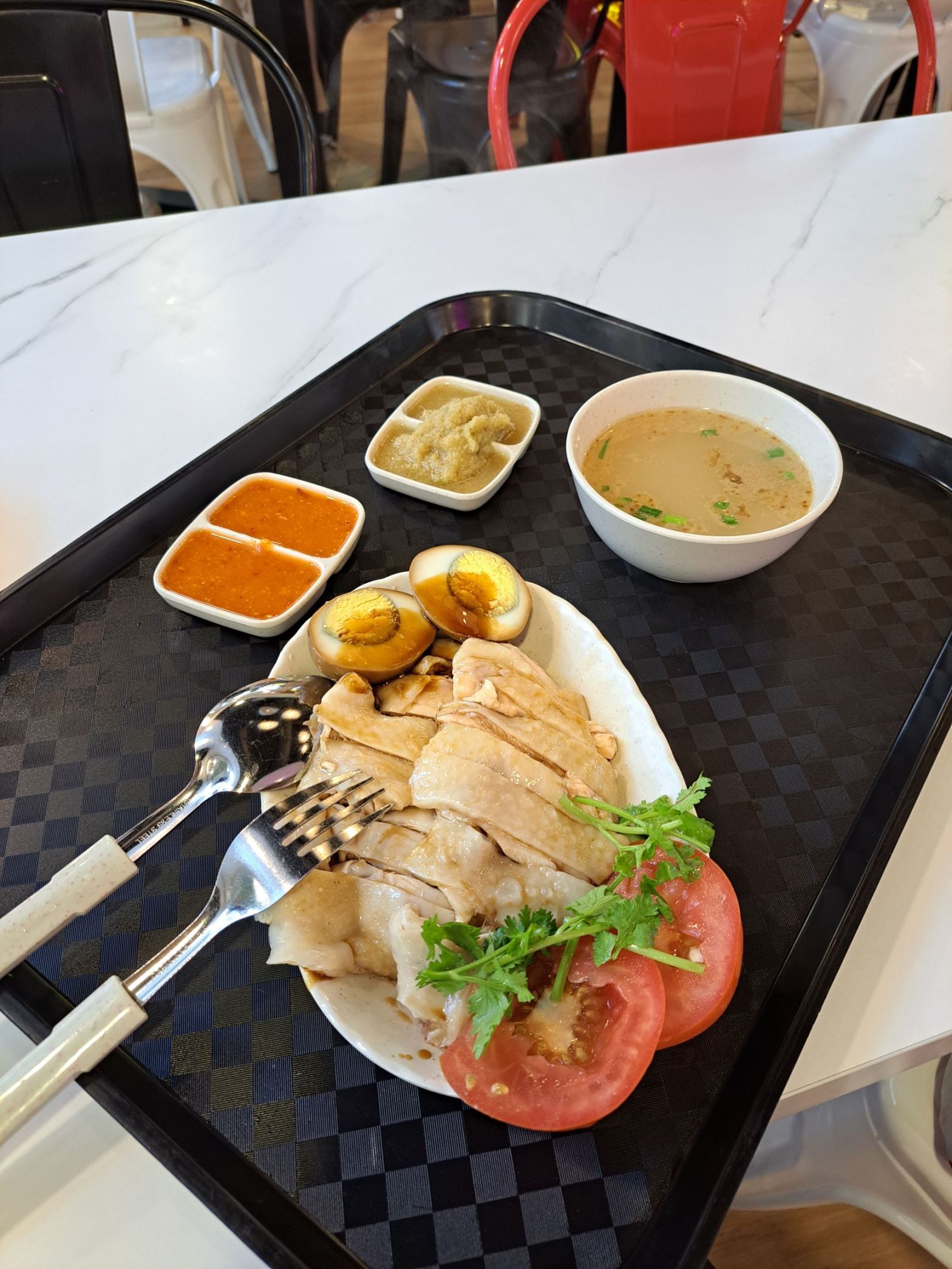 在burger $6 和 鸡饭没有饭加卤蛋间思考,我应该、我不应该? 最后用了burger面包有carbohydrate 的这一争论点决定了我还是前往Cathay Food Avenue foodcourt 找鸡饭。