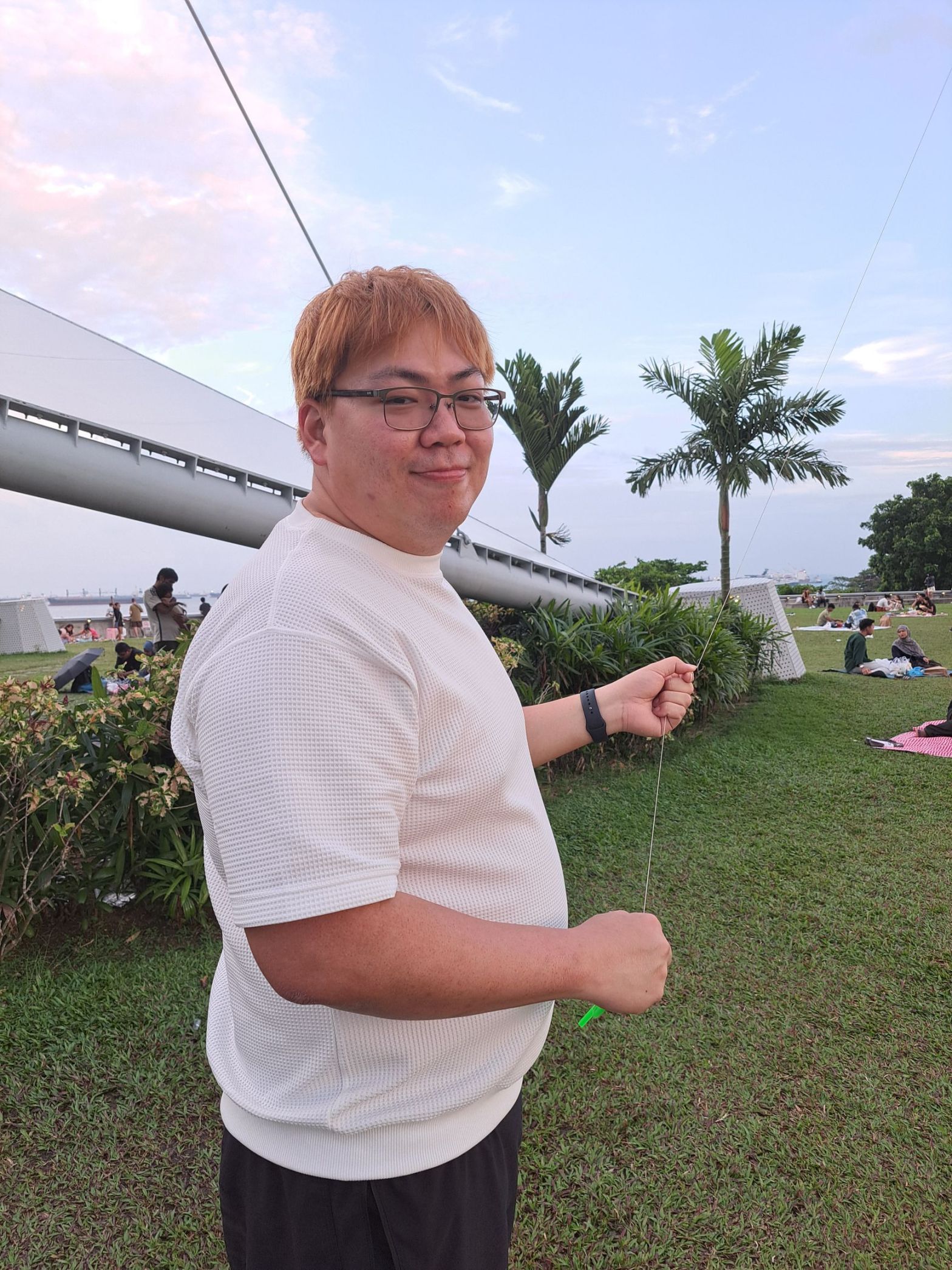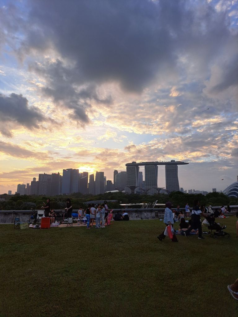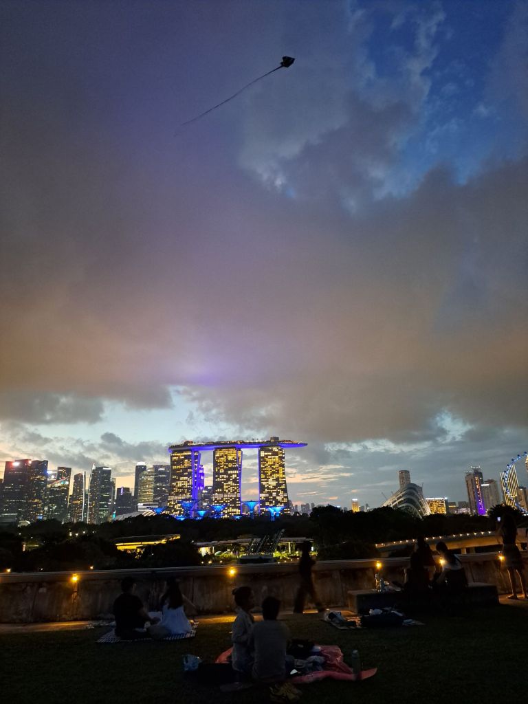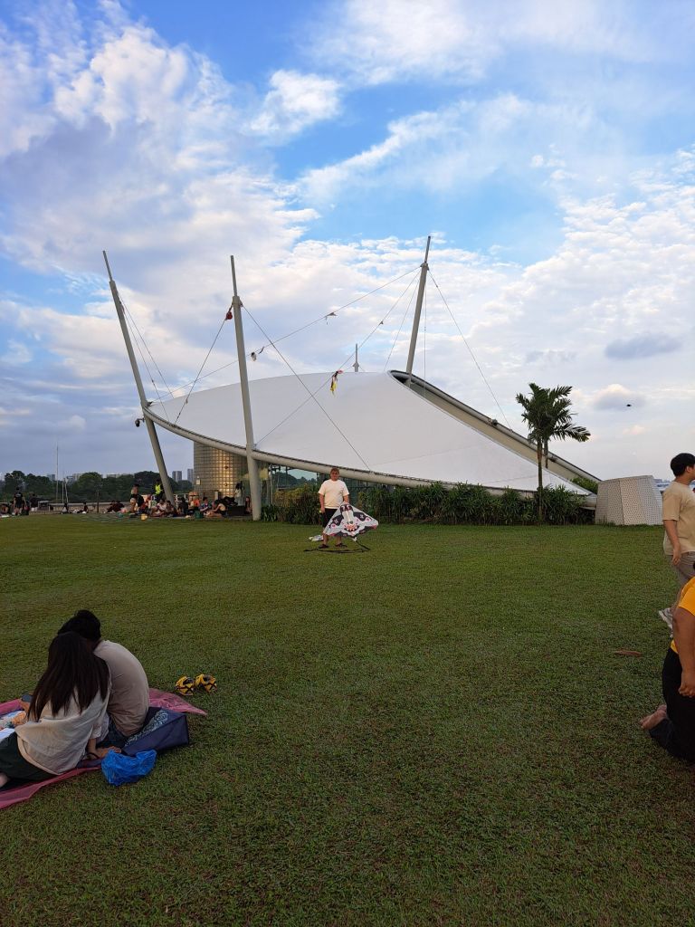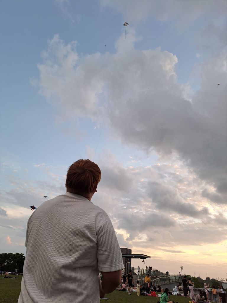 第一次放风筝, 如果我的记忆好的话, 真是我人生的第一风筝。 快下班时, 老哥video call 说要放风筝, 没尝试过的我, 来吧, 等我下班后我来。也是我第一次走上Marina Barrage的广场, 是谁倡导的放风筝活动, 来到这里的大家心里已经auto mode, 知道该带什么, 该做什么。