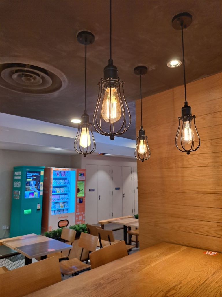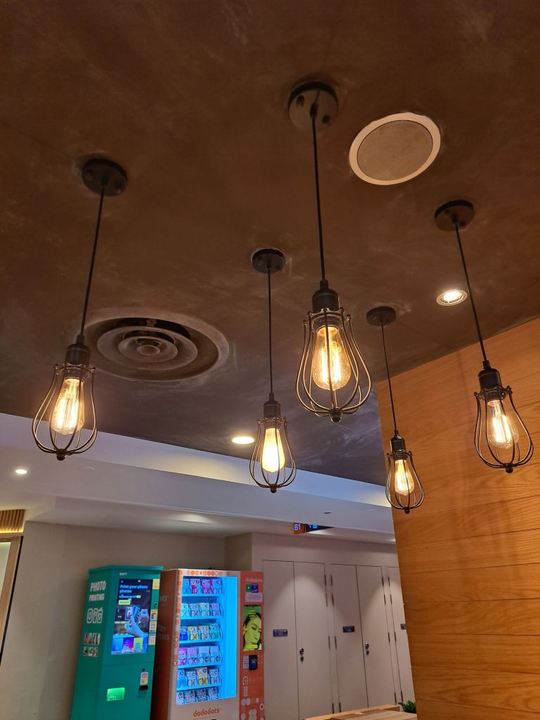 抬头看着这些灯泡💡, 这小小高高的空间给我不一样的感觉-高雅安静。