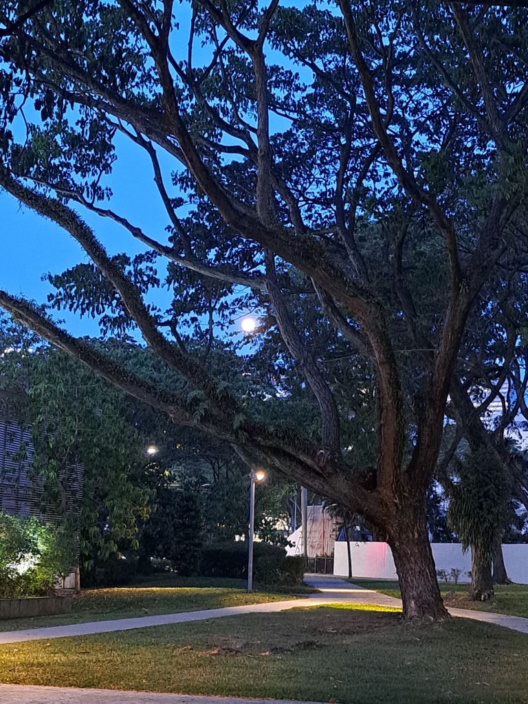 在树梢之间看到的月亮, 伴我周三的夜晚。