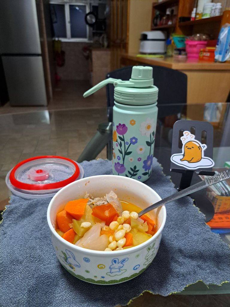 半夜来碗汤萝卜四川菜玉蜀黍排骨汤, Kwee Ling 说自己煮多了请我喝。