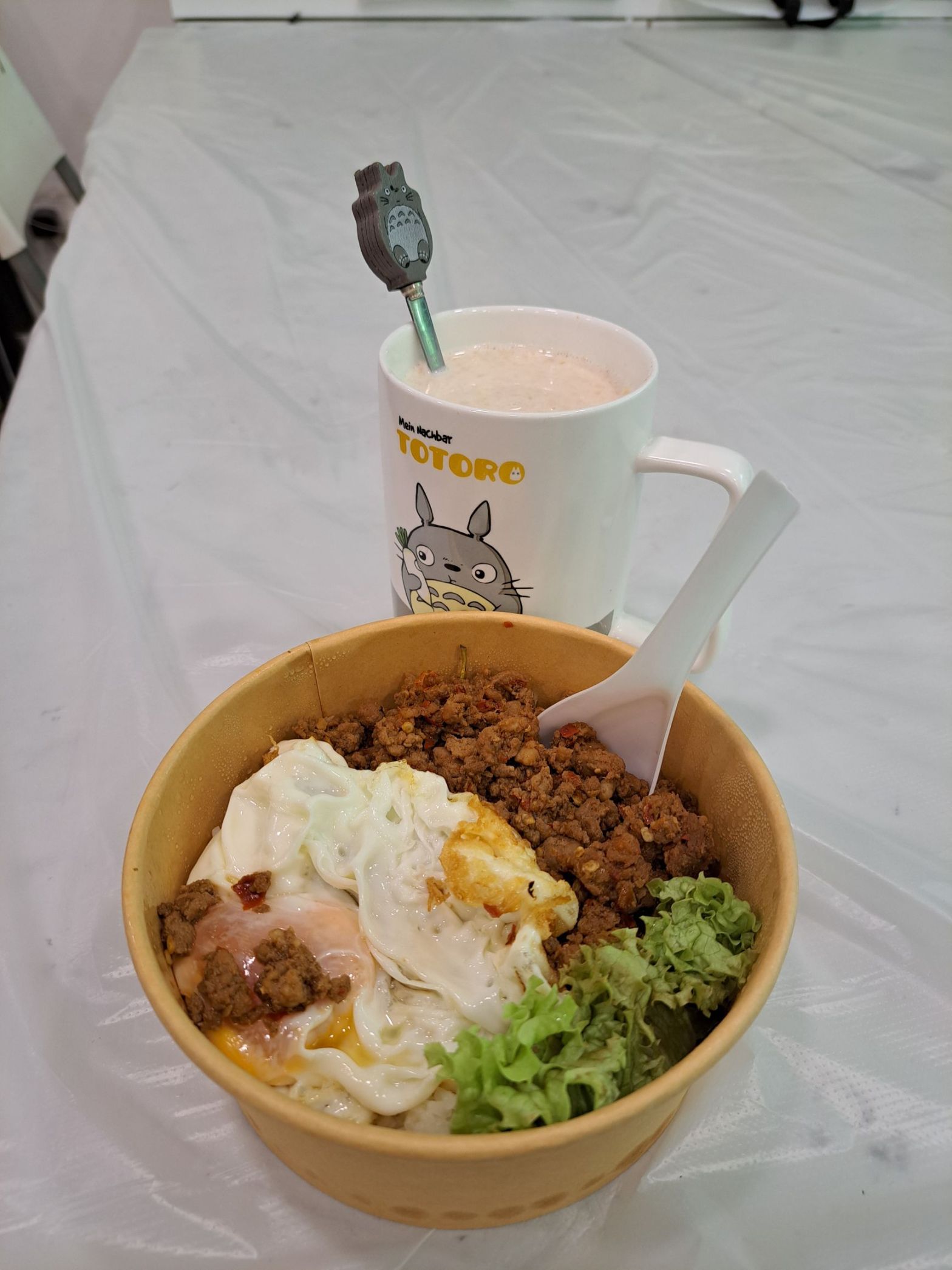 香喷喷的thai basil rice, 我在Singapore Expo TLM Foodfest 买的, $6, 真宗泰国人准备的。 虽然比7-11 卖得贵点, 但是味道不一样, 肉的分量很多, 配起辣辣的辣椒好吃, 味道好吃。 佩服自己的选择, 能找到物超所值的deal, 哈哈!