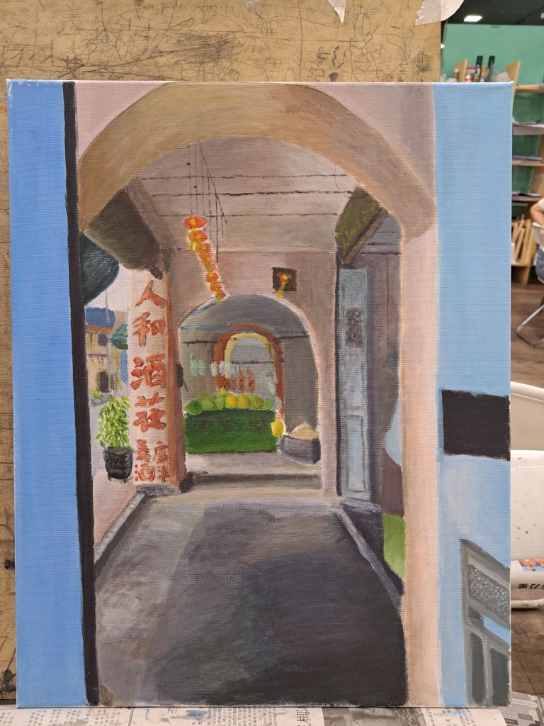 但, 在画画的过程中, 我学会自己放慢,认真思考下我到底有没有看整体的调和harmony, 不光顾着局部局部的色调, 要注意整体的感觉。