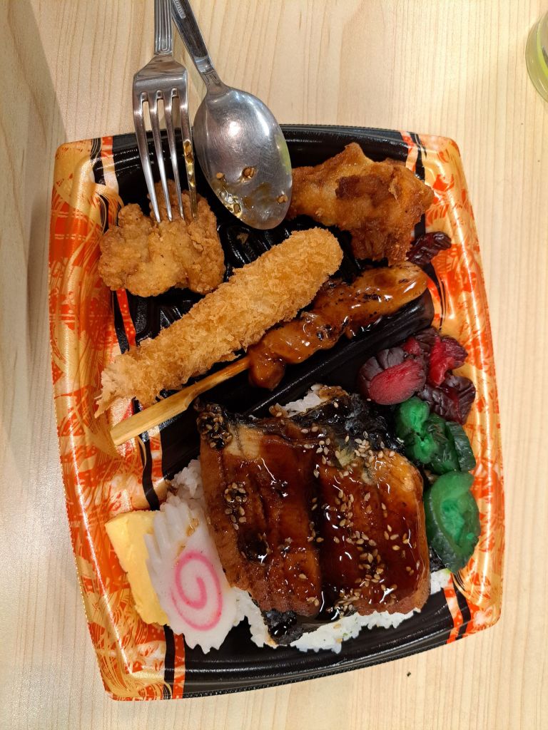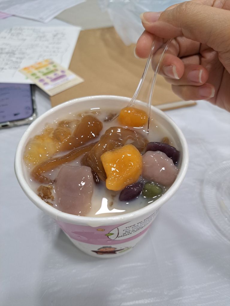 在整条unagi +饭 $14.90 , 和, unagi 杂杂+饭 $12.90 之间, 我选了后者。 后来嘴馋, 在Jean 建议要买饮料的当儿, 我路过了九鲜Nine Fresh甜品店, 买了菊花海底椰给我,周老师和Jean。好吃😋。 其实我发现自己太会省钱了, 这些大大小小的吃花费我一向都不沾边。 为了健康,为了钱包。