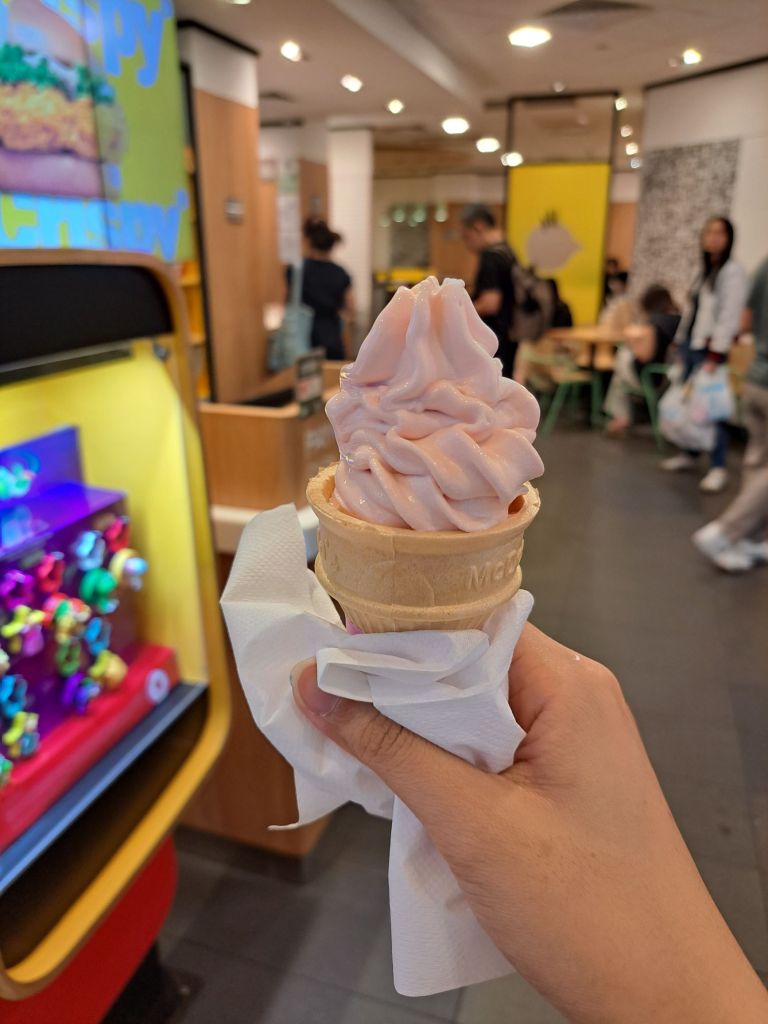 我第一次试试看strawberry 口味的sundae cone, 不会很甜, 还行。